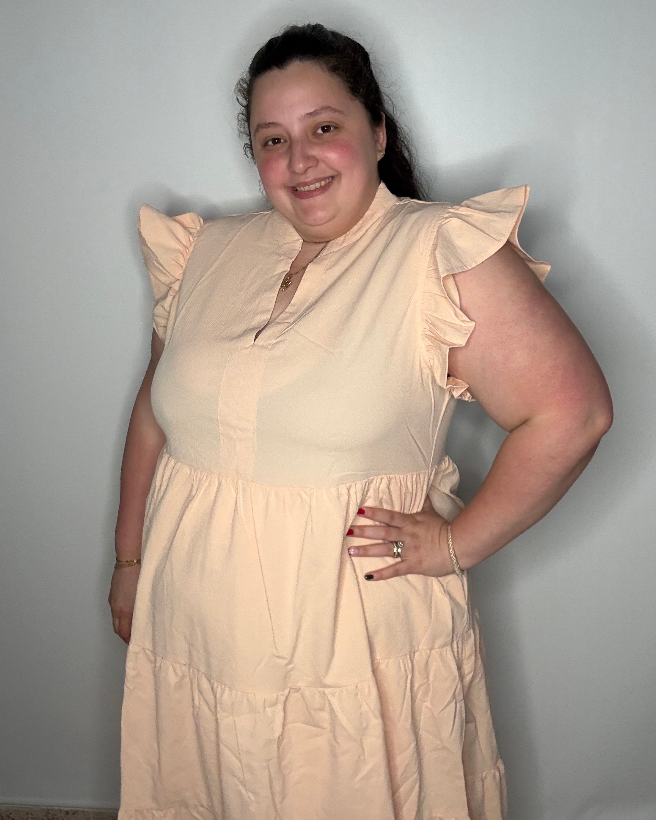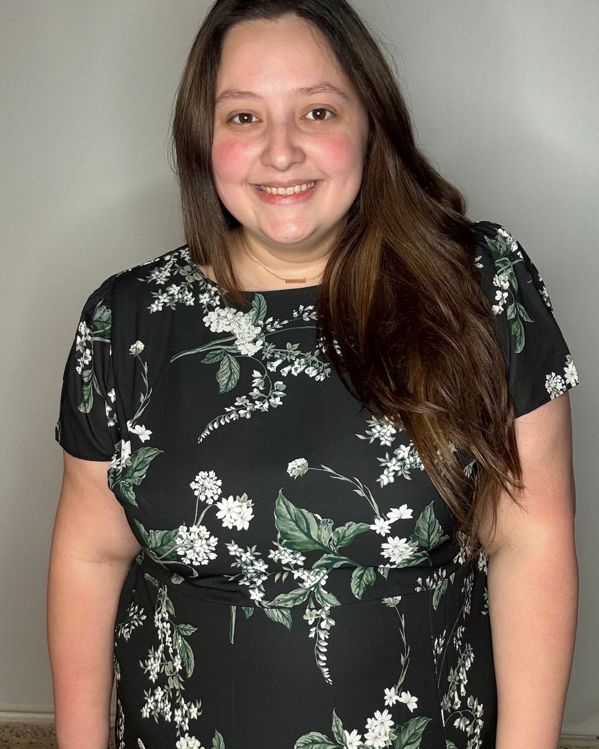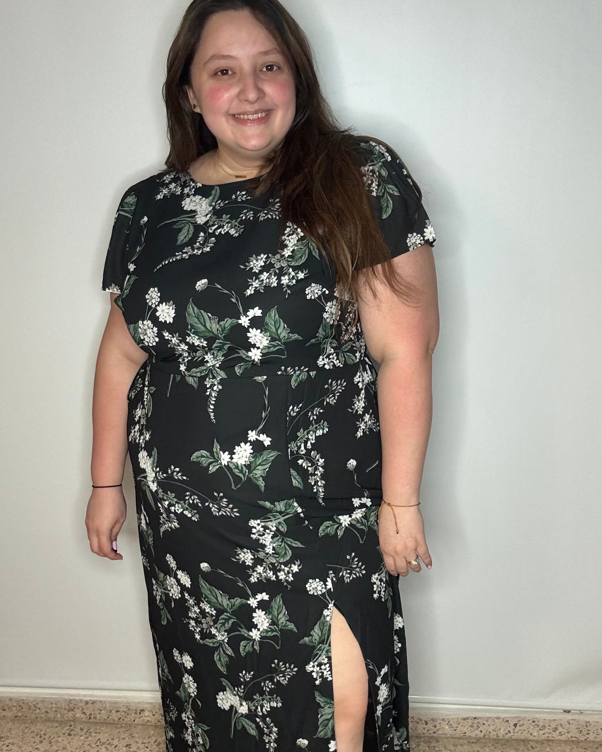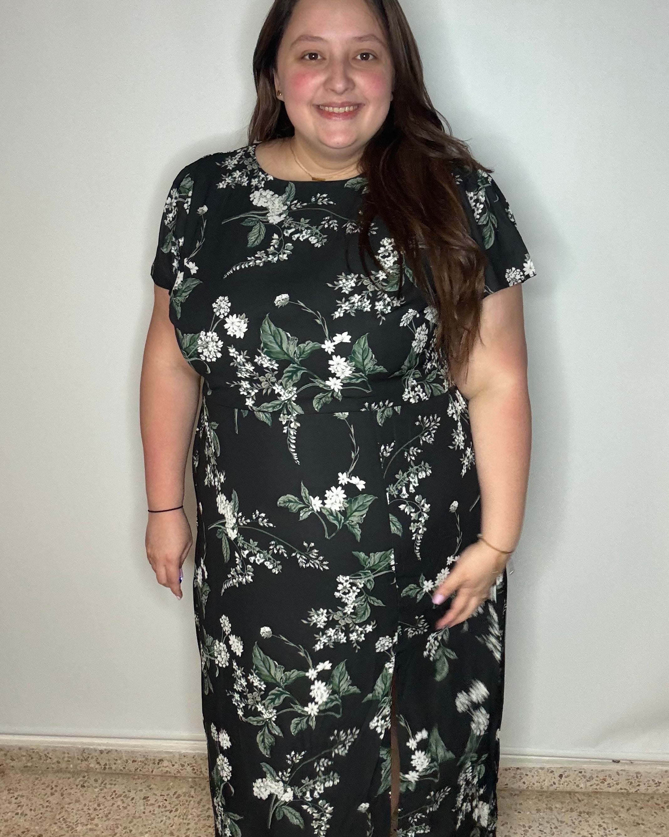 This dress is so cute and fits perfectly! Very slimming!