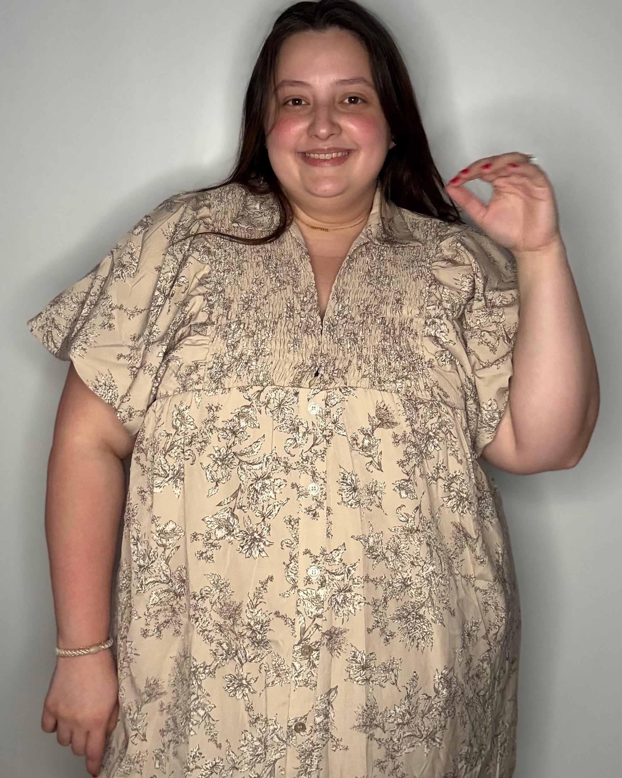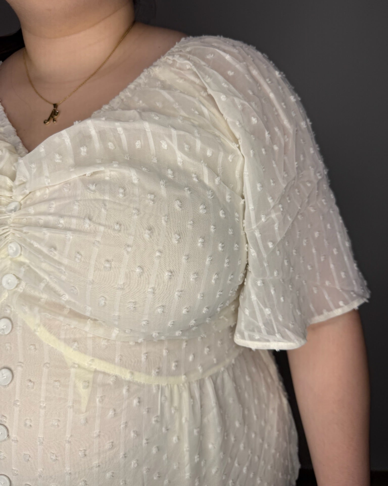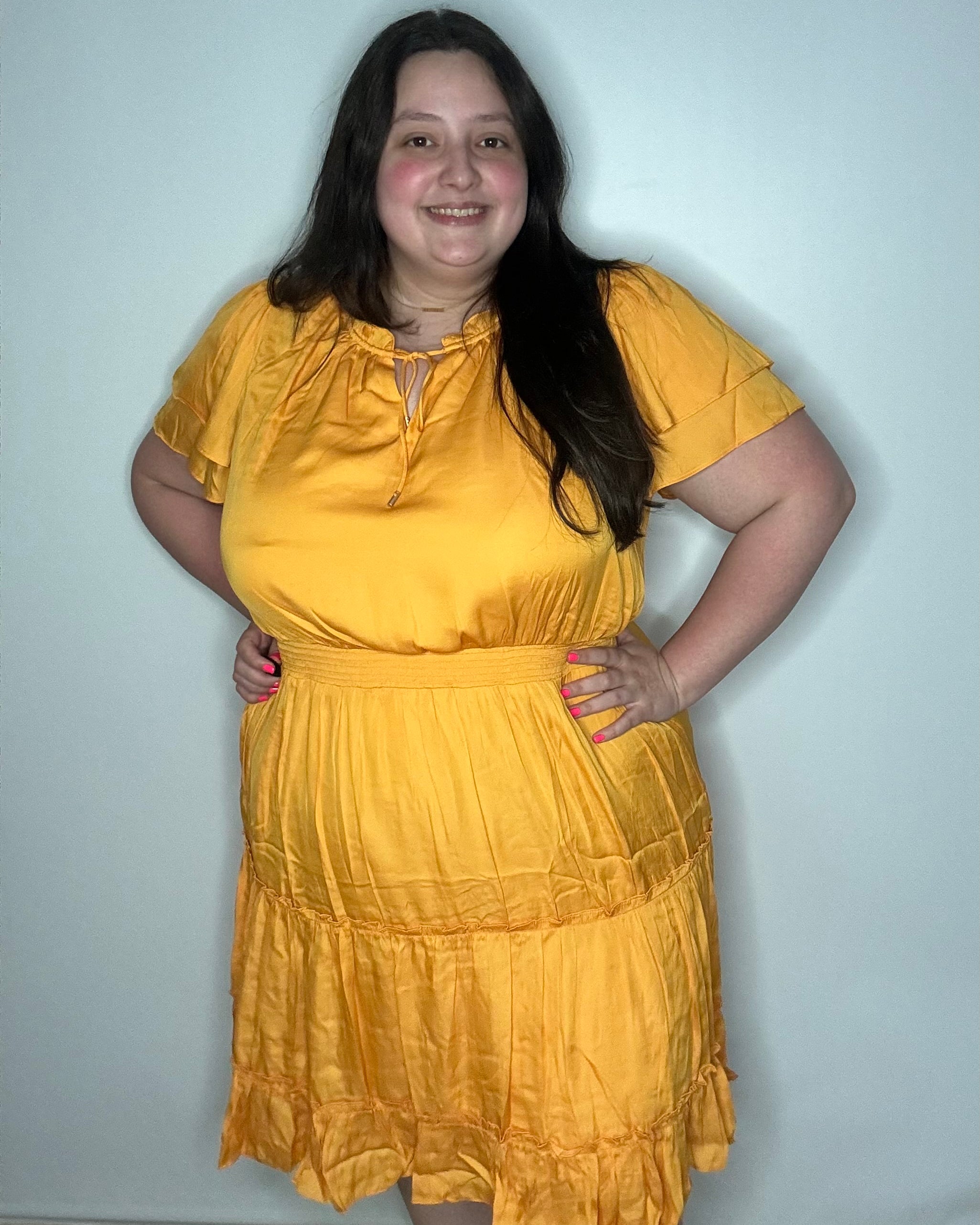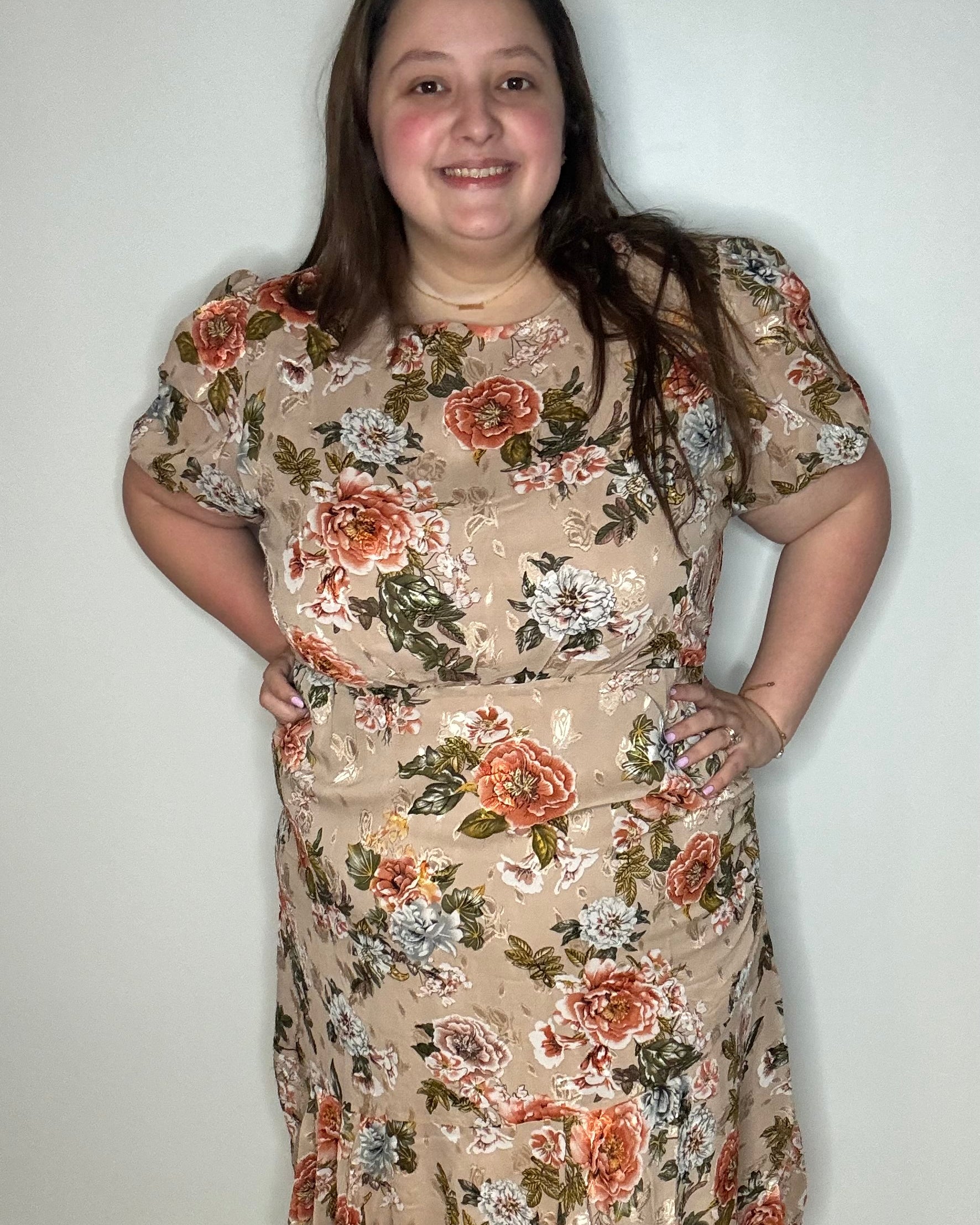 This dress is so cute and fits perfectly! Very slimming!