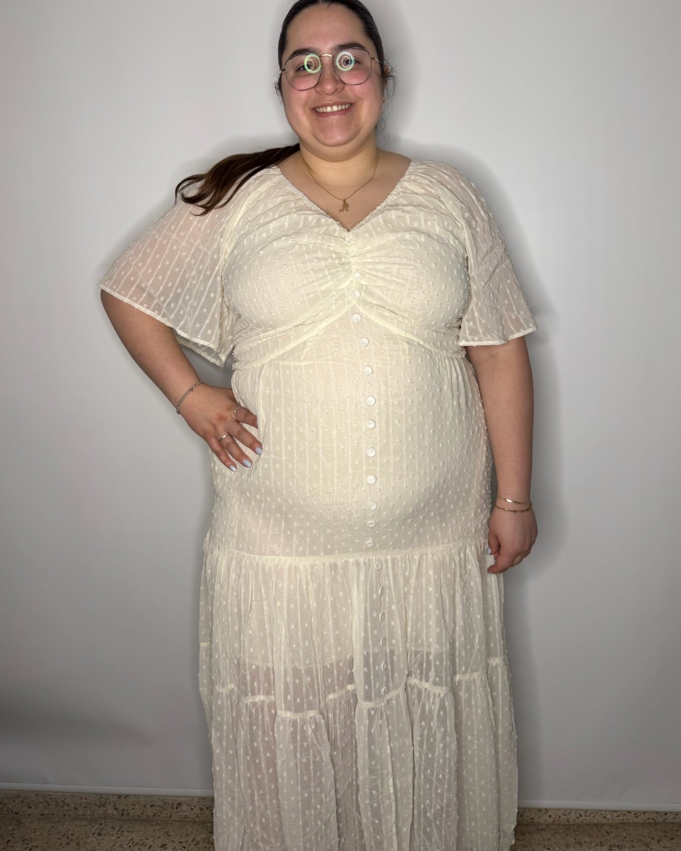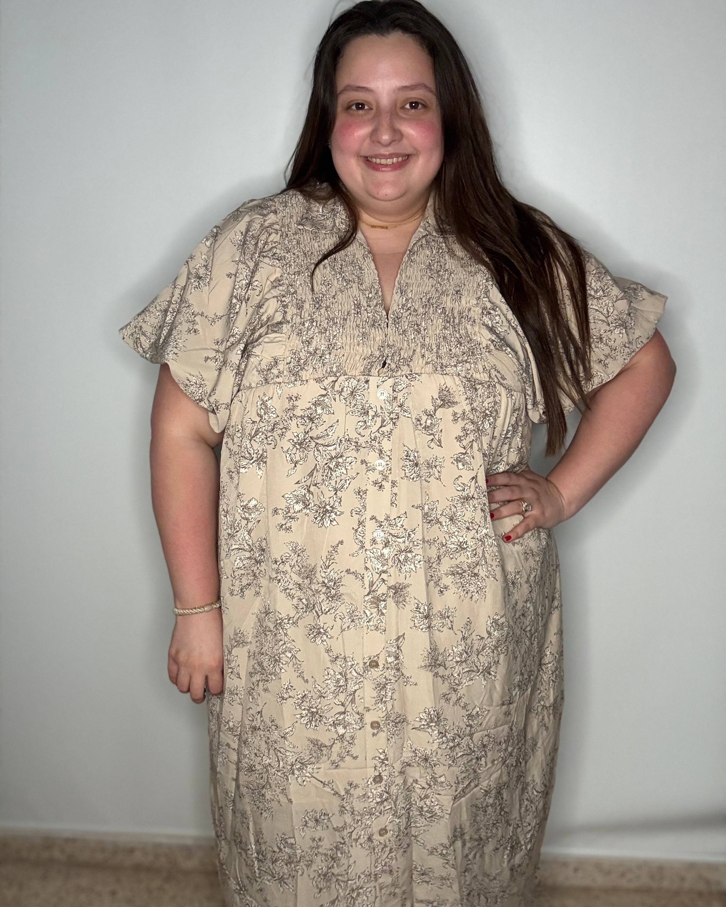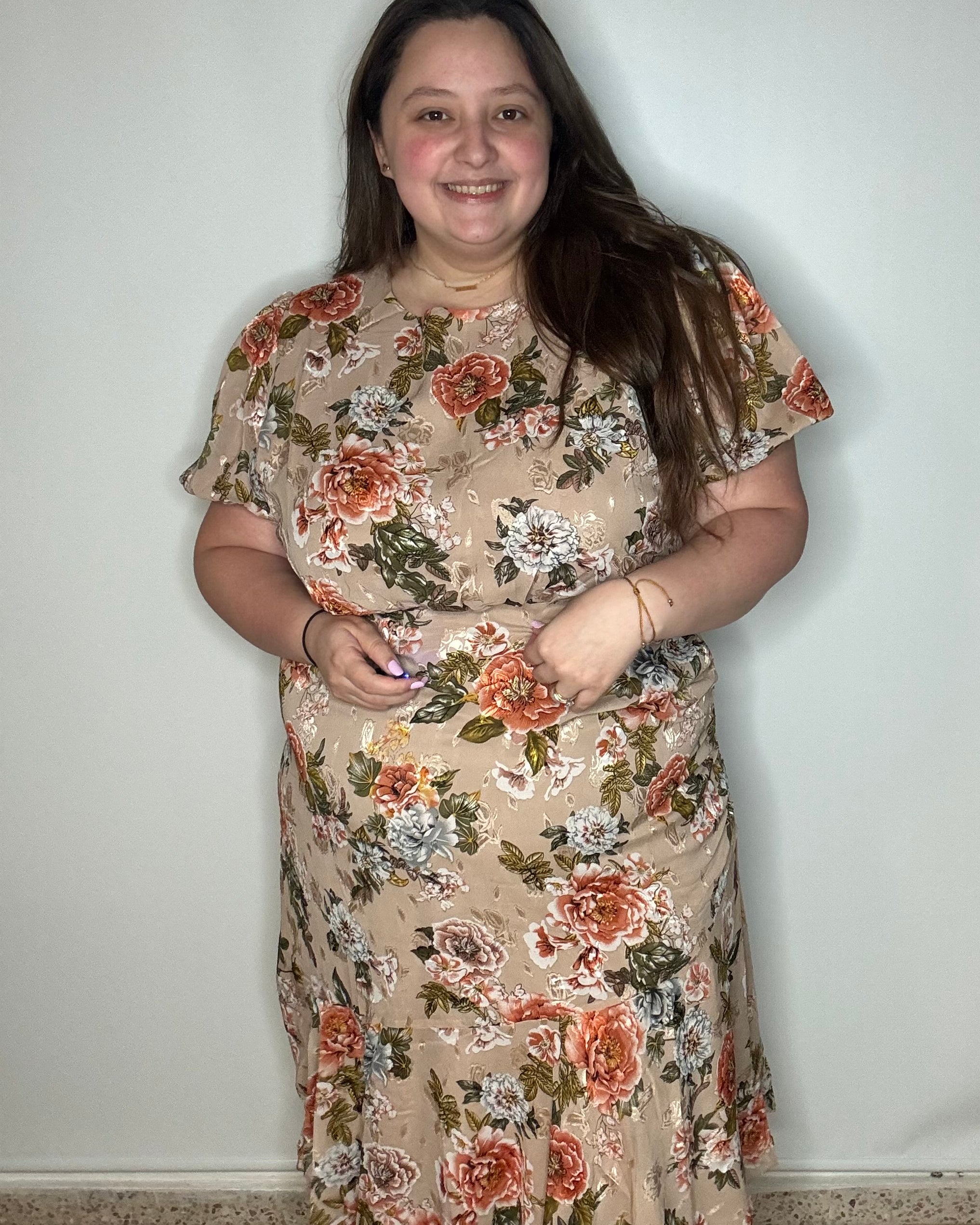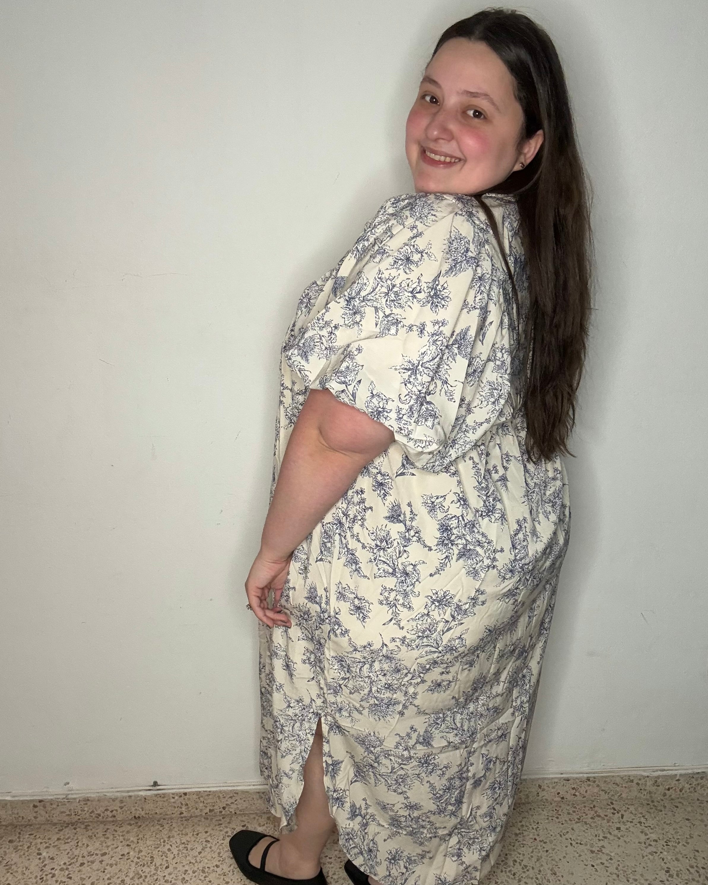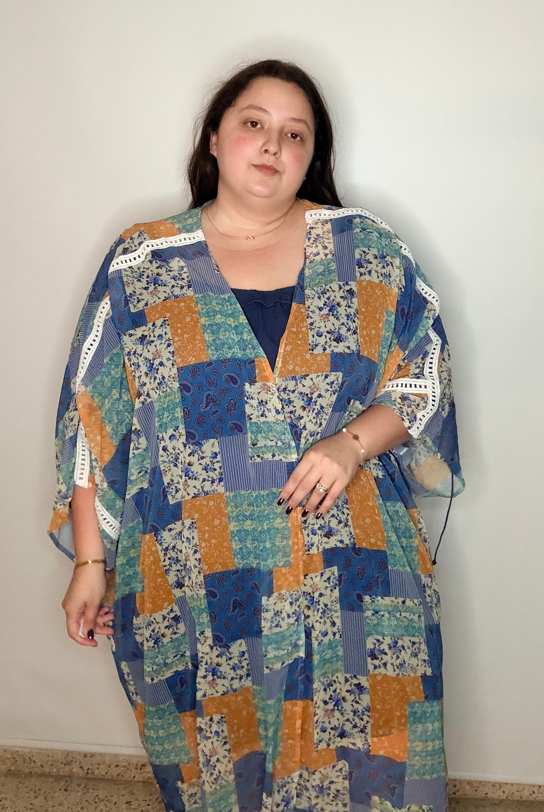 El traje está fabuloso. Lo tengo puesto hoy y me siento como una princesa. Los colores resaltan con mi piel y eso me gusta mucho. Tiene bolsillos que me encanta! Es súper suave y flowy. Deverdad que me encanta demasiado.