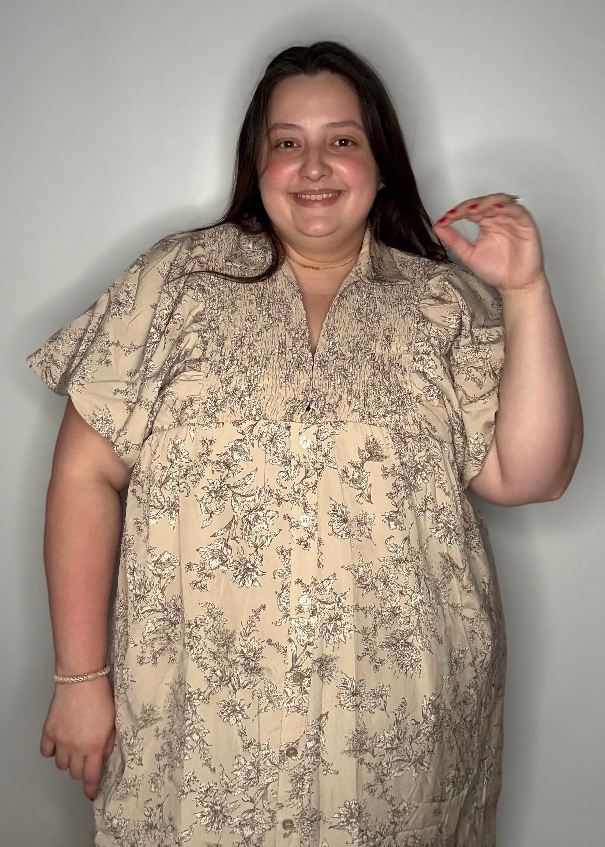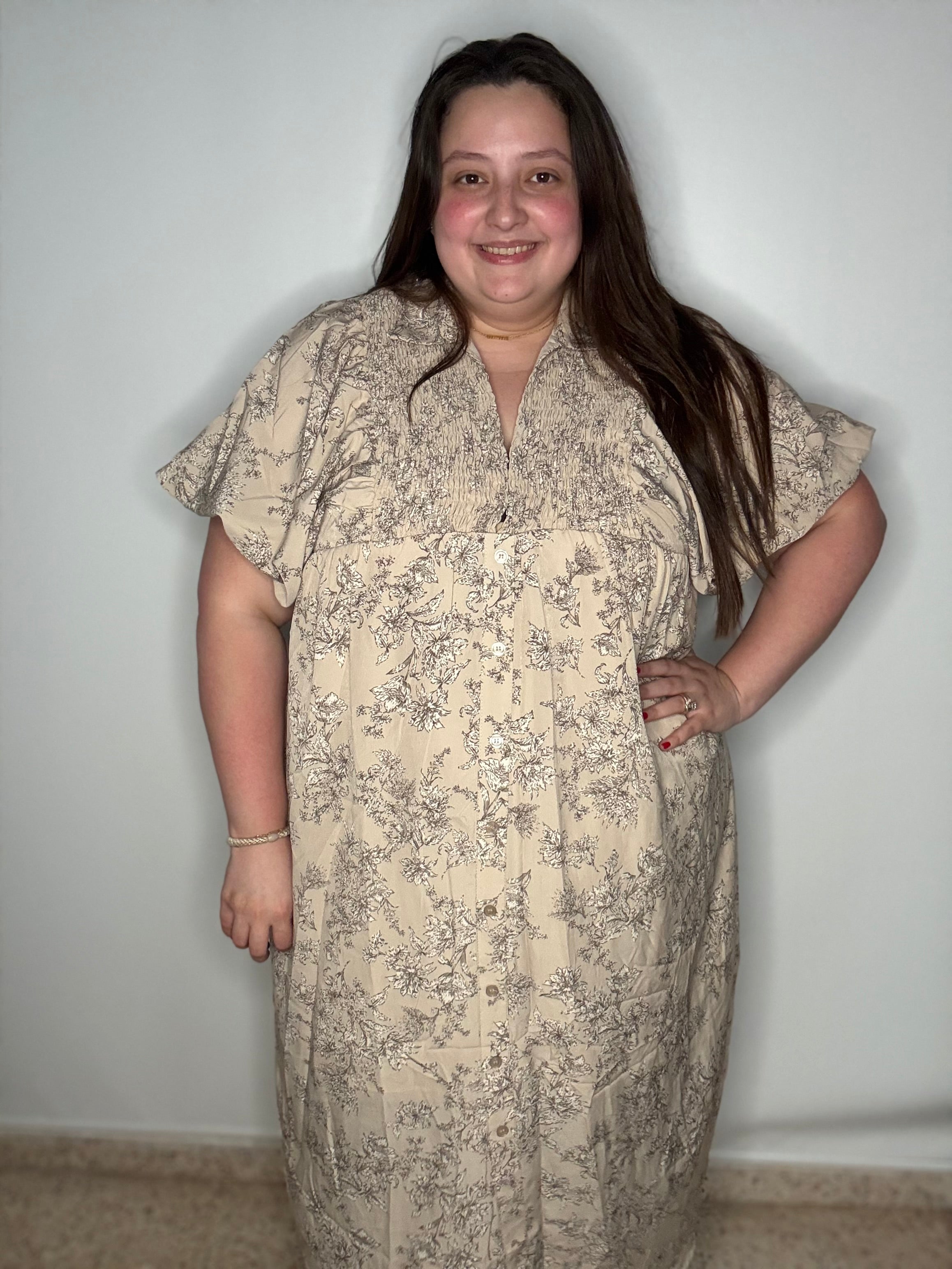 Bubble Beige Floral Midi Dress