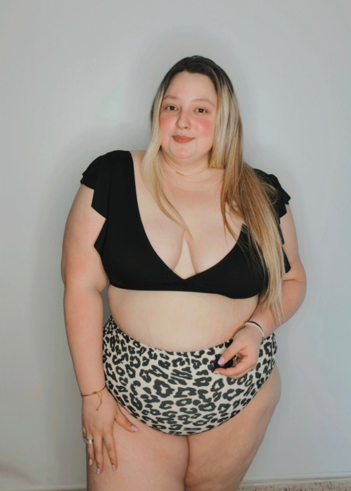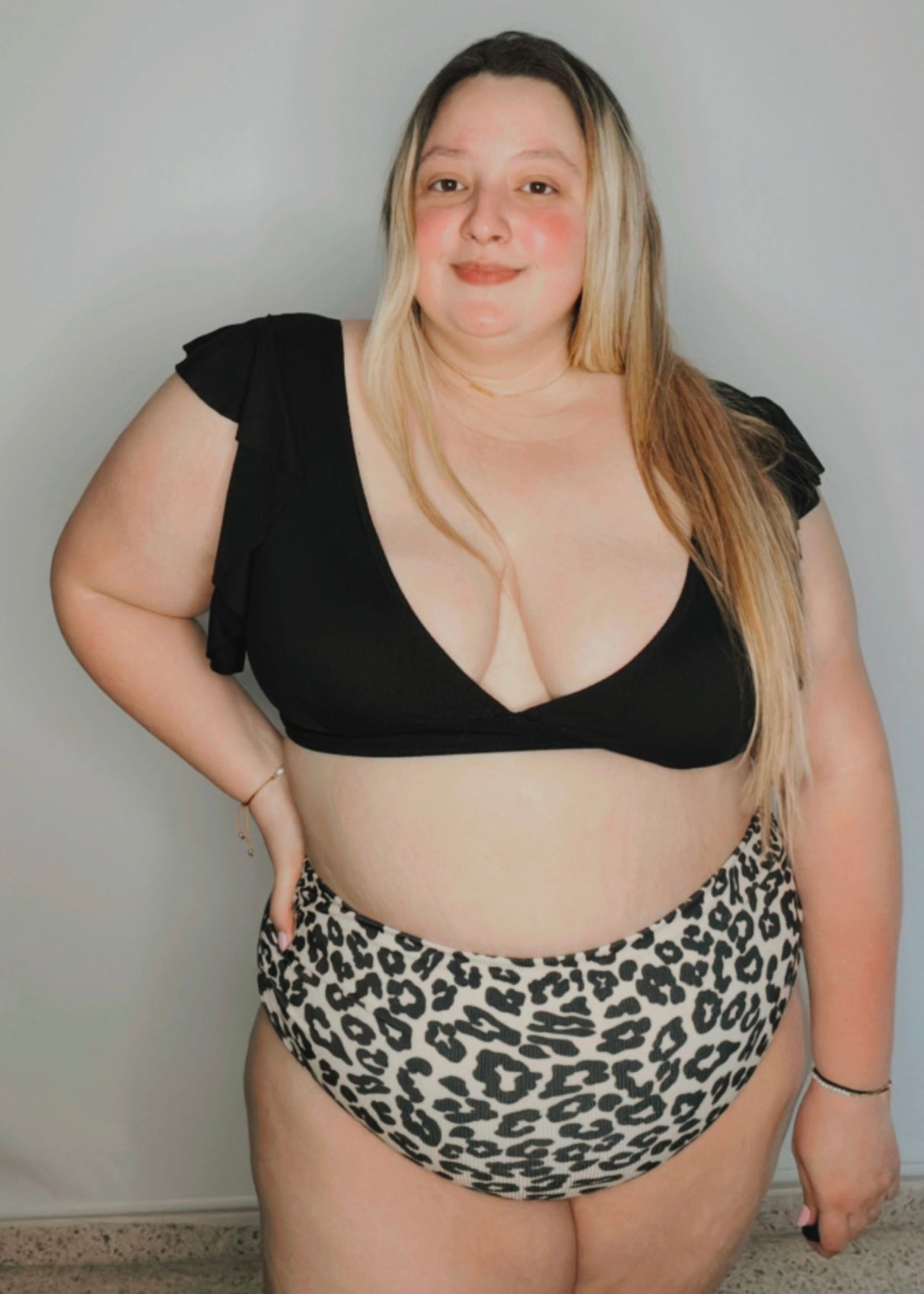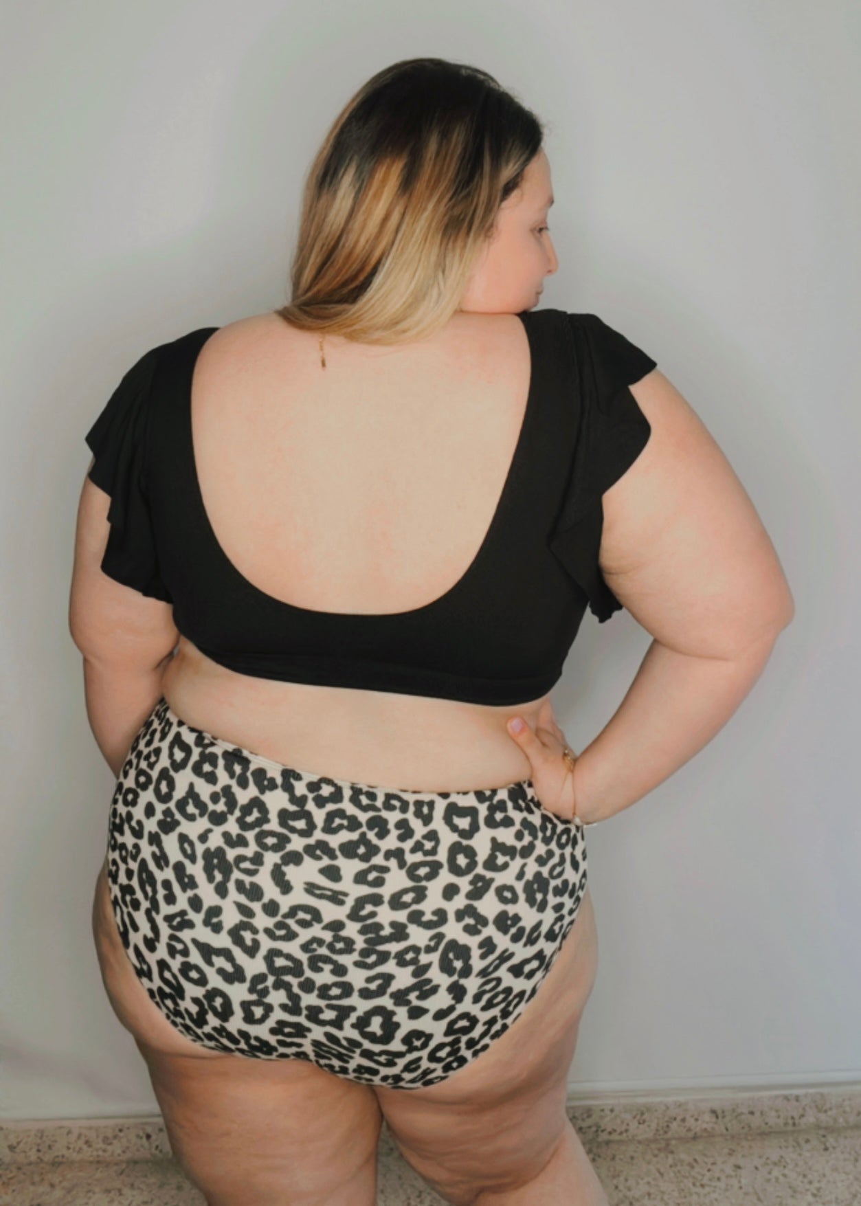 Unleash your wild side with our Two Piece Leopard Swimwear. This luxurious set features a fierce leopard print and ruffle shoulder design. Feel confident and stylish at the pool or beach.