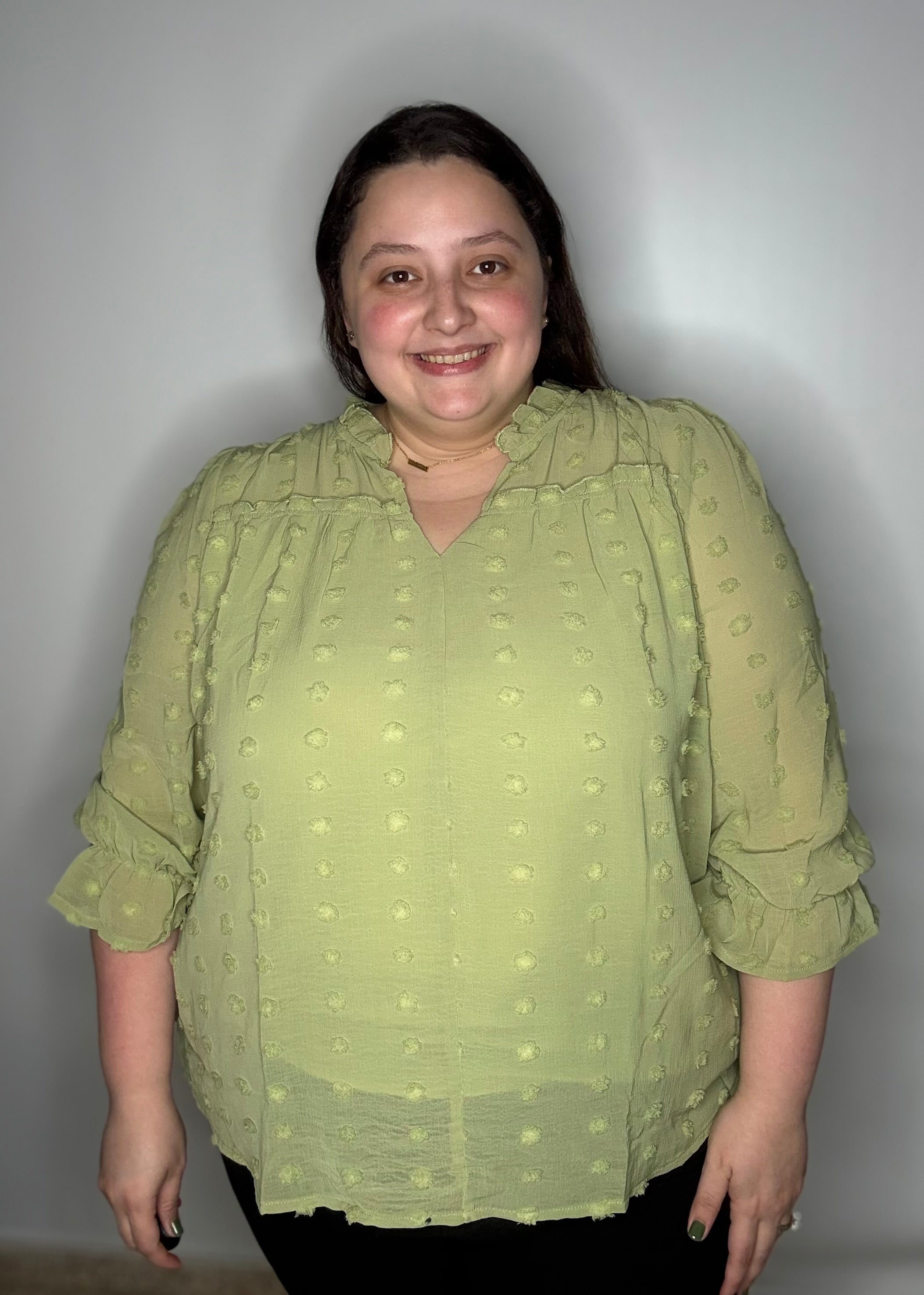 Indulge in luxury with our Sage Shirring Blouse. Featuring a low hem and body lining, this blouse exudes sophistication. The shirring adds a touch of elegance, making it a must-have for any fashion-forward wardrobe. Elevate your style with this exclusive piece.
