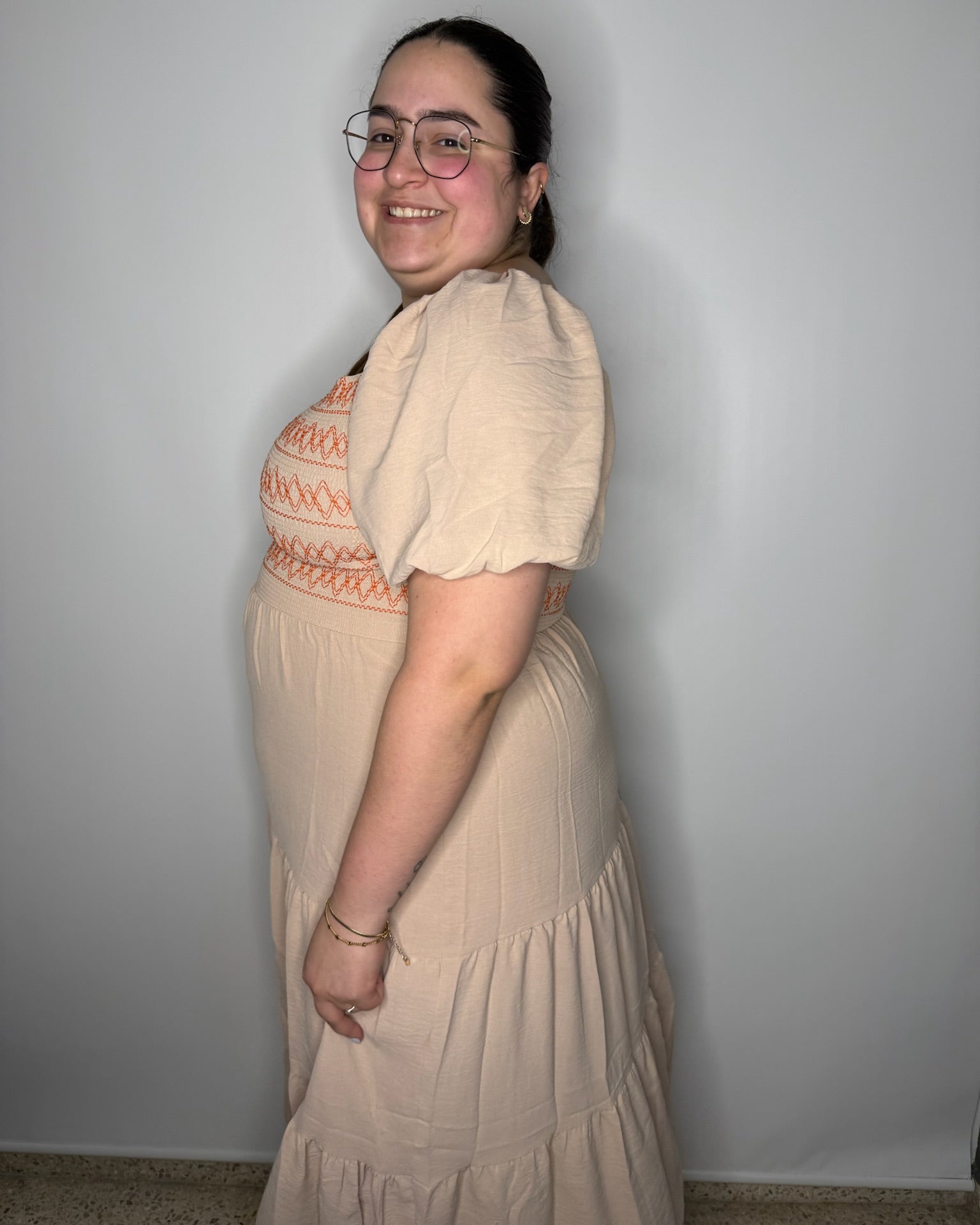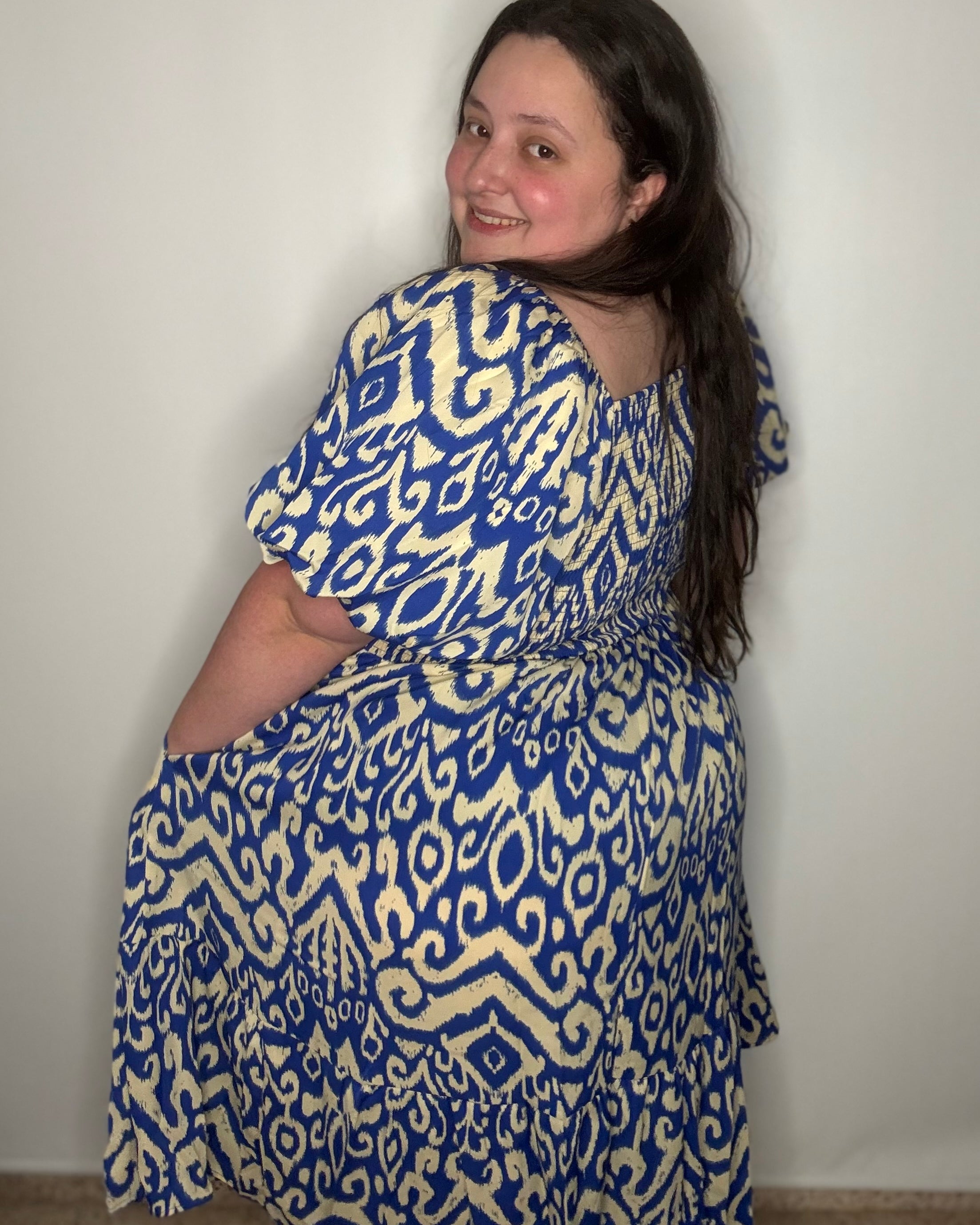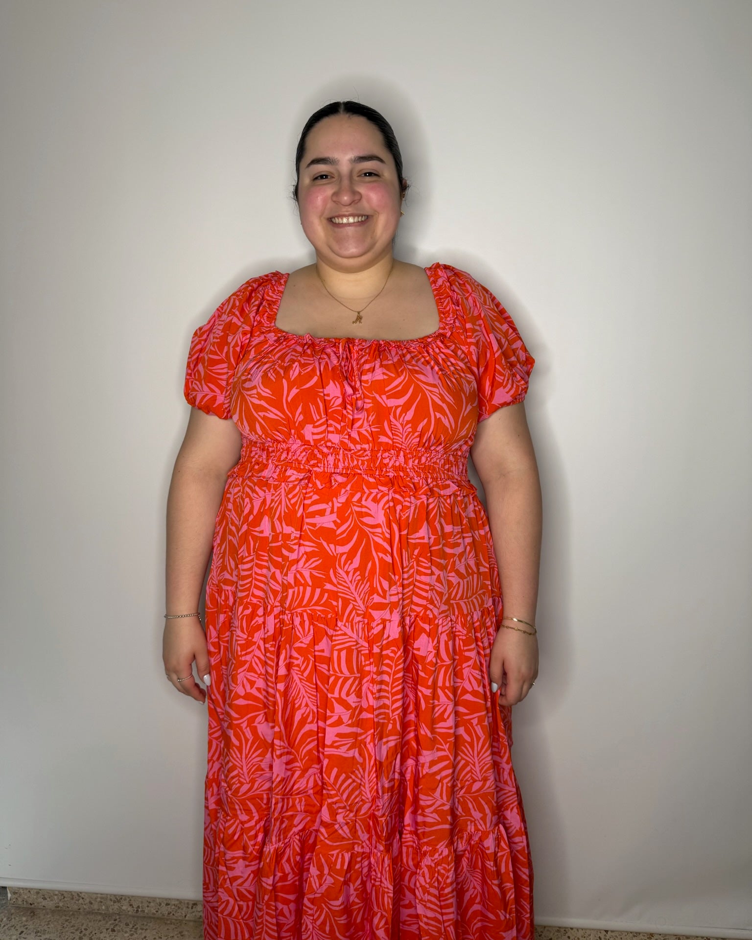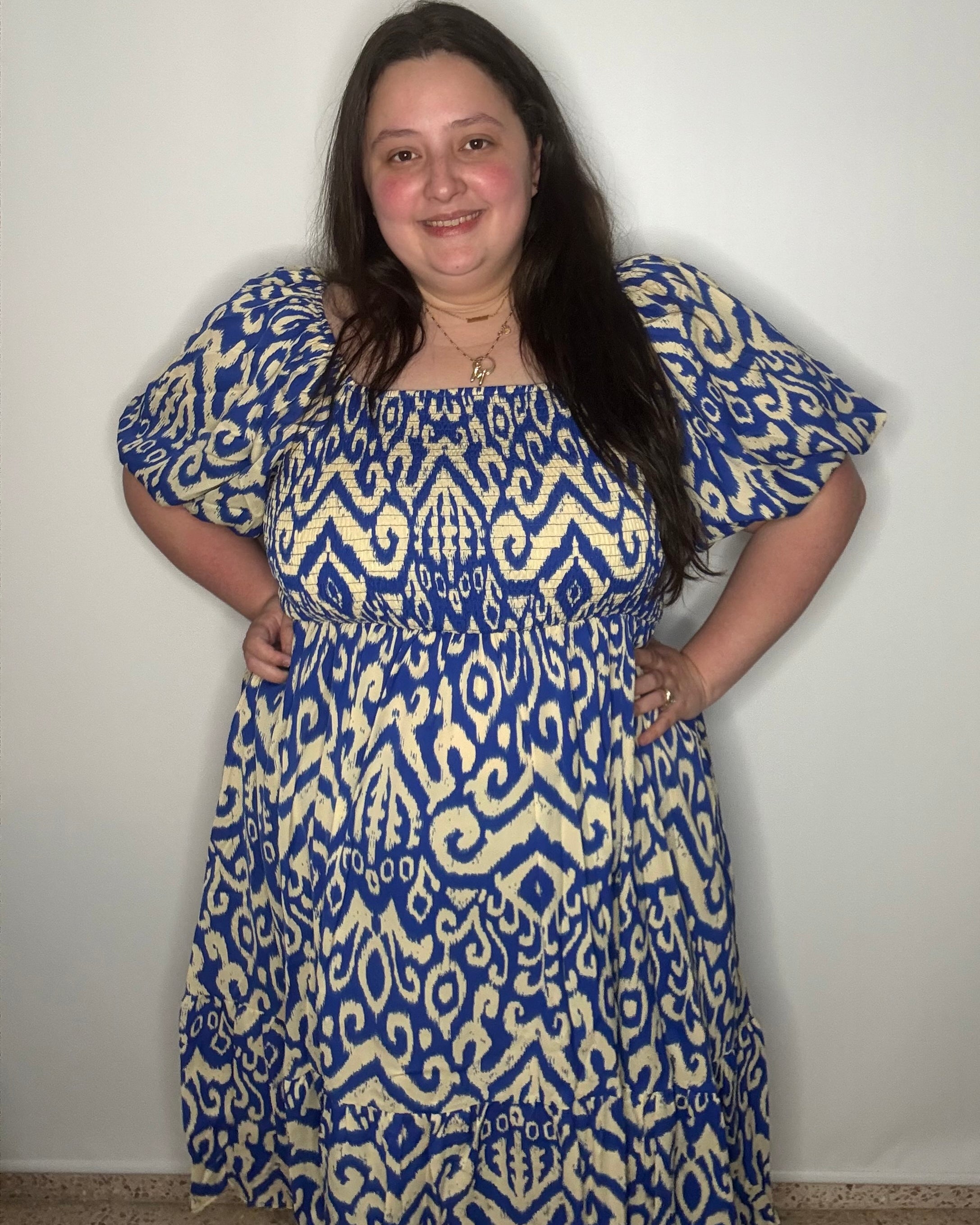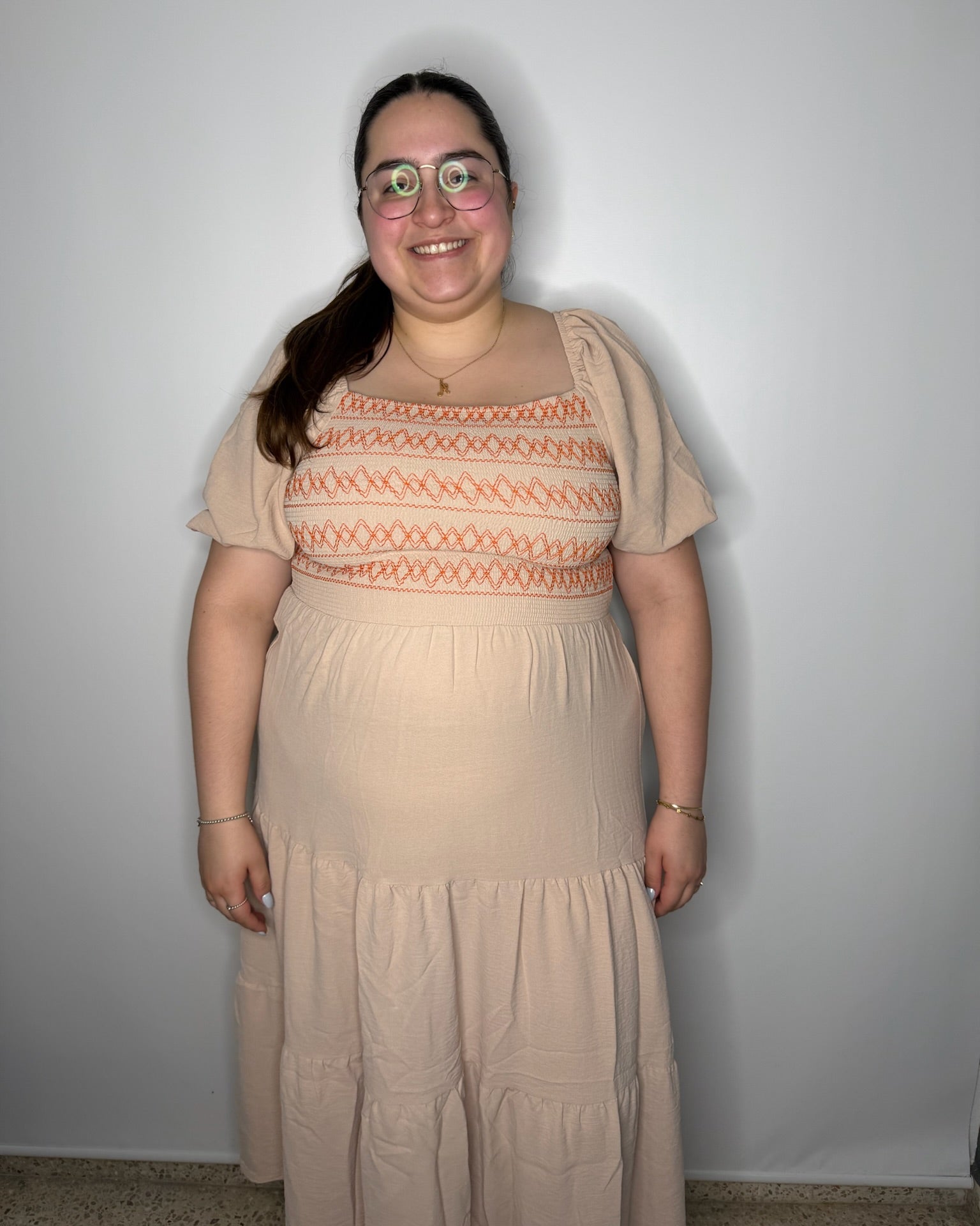 El traje está fabuloso. Lo tengo puesto hoy y me siento como una princesa. Los colores resaltan con mi piel y eso me gusta mucho. Tiene bolsillos que me encanta! Es súper suave y flowy. Deverdad que me encanta demasiado.