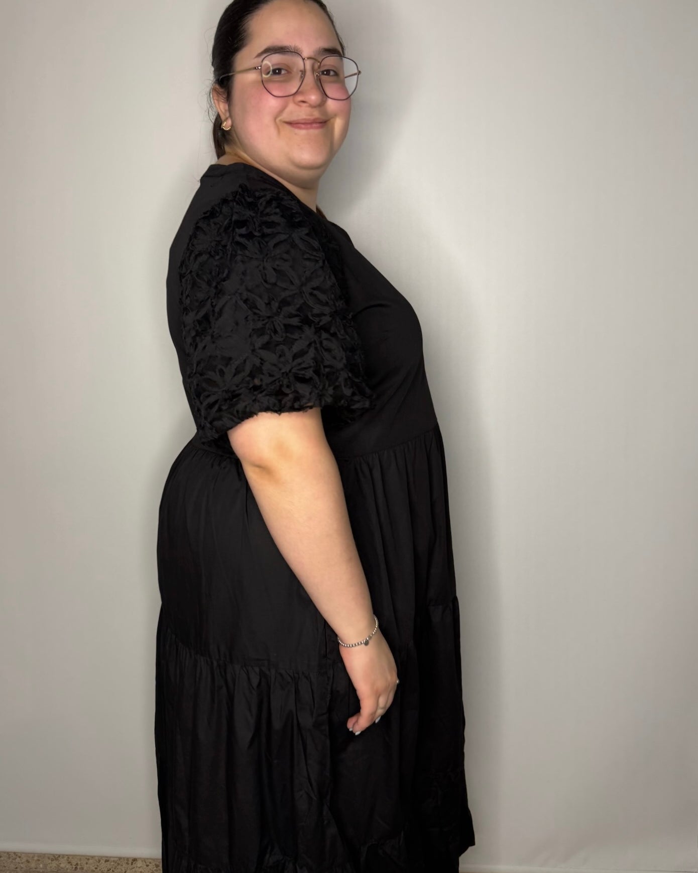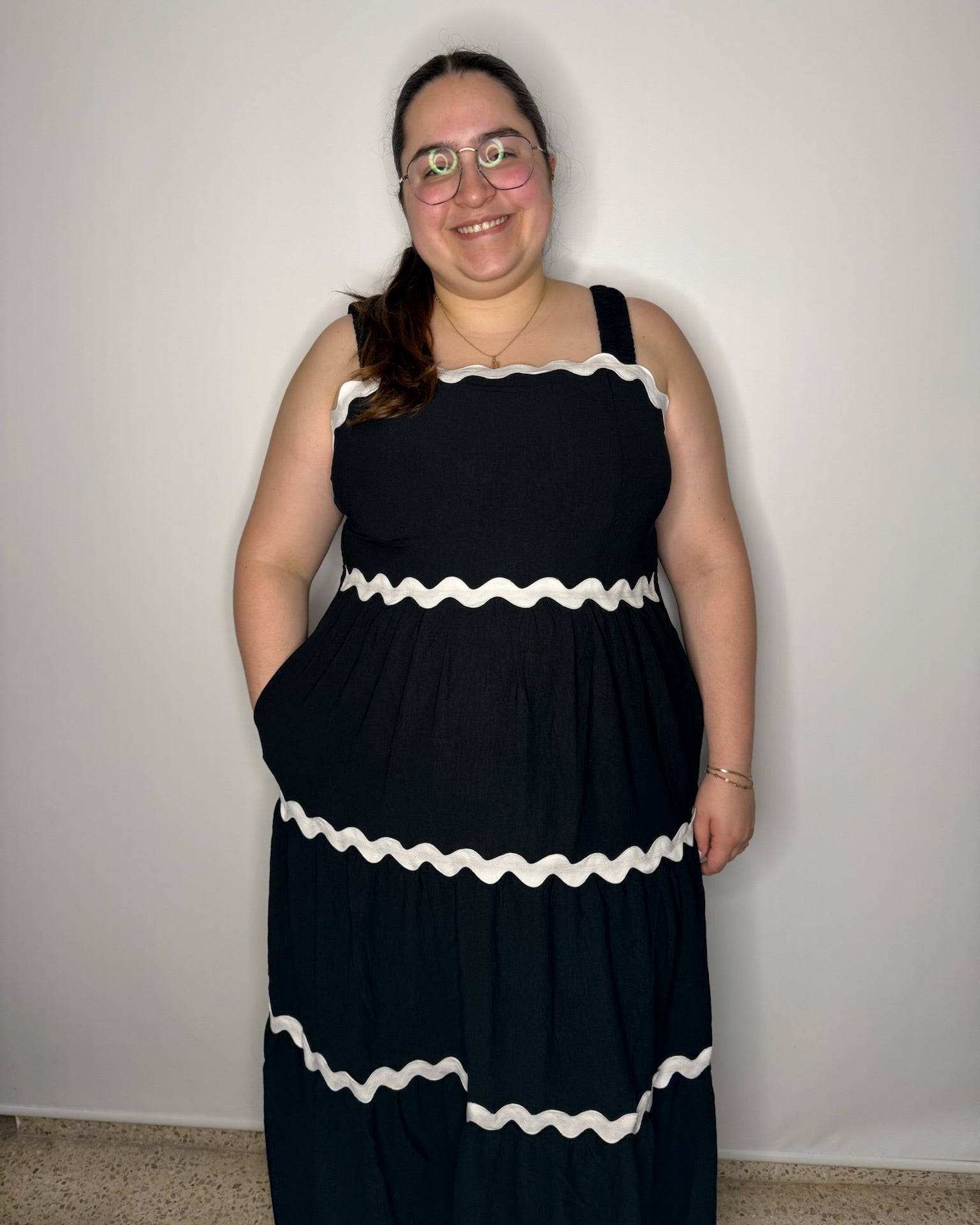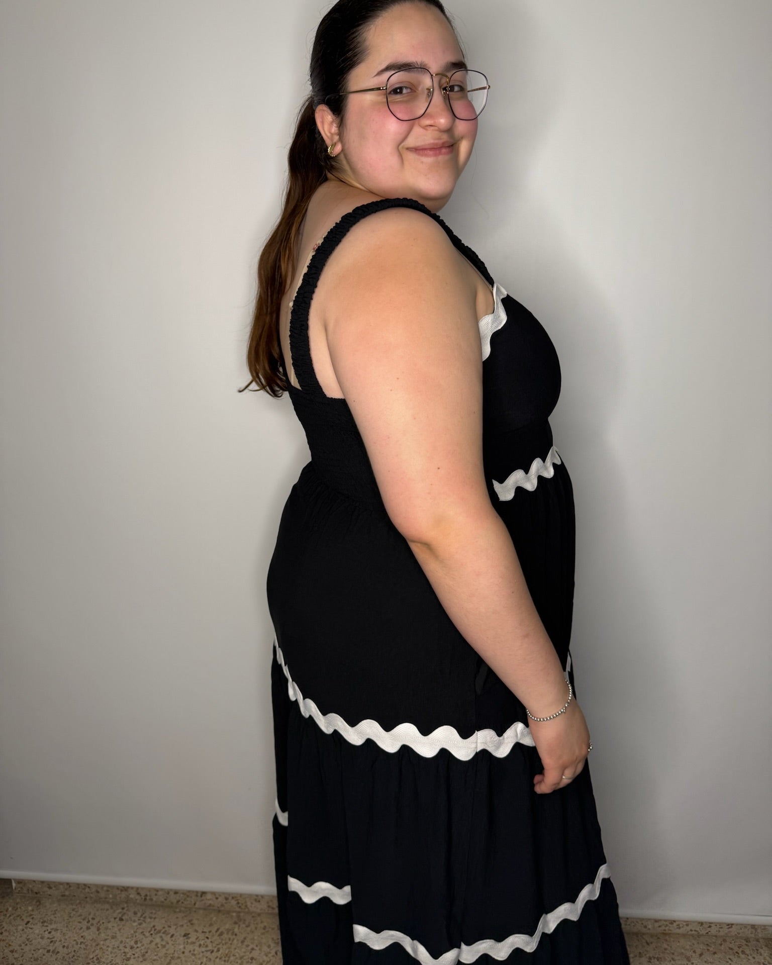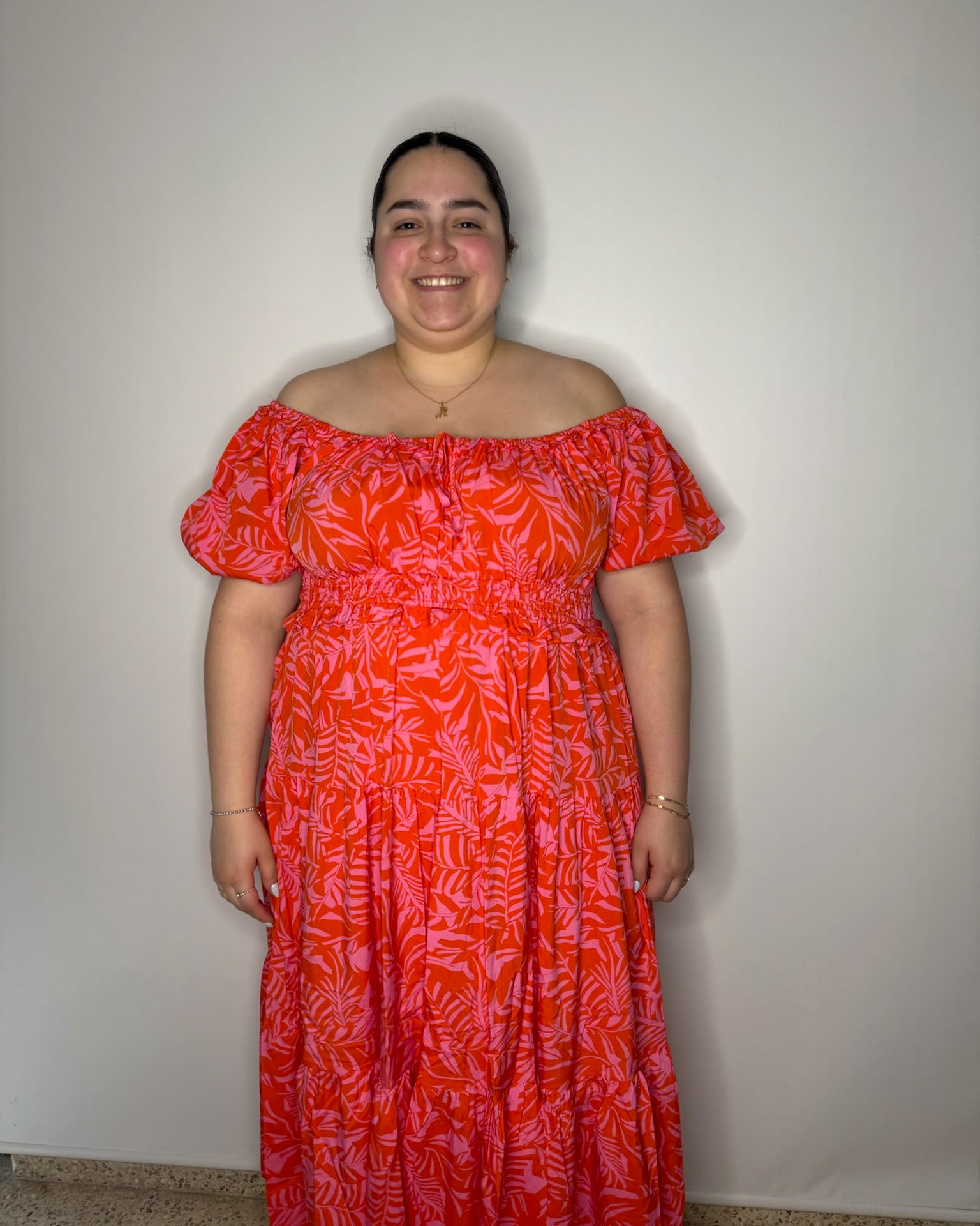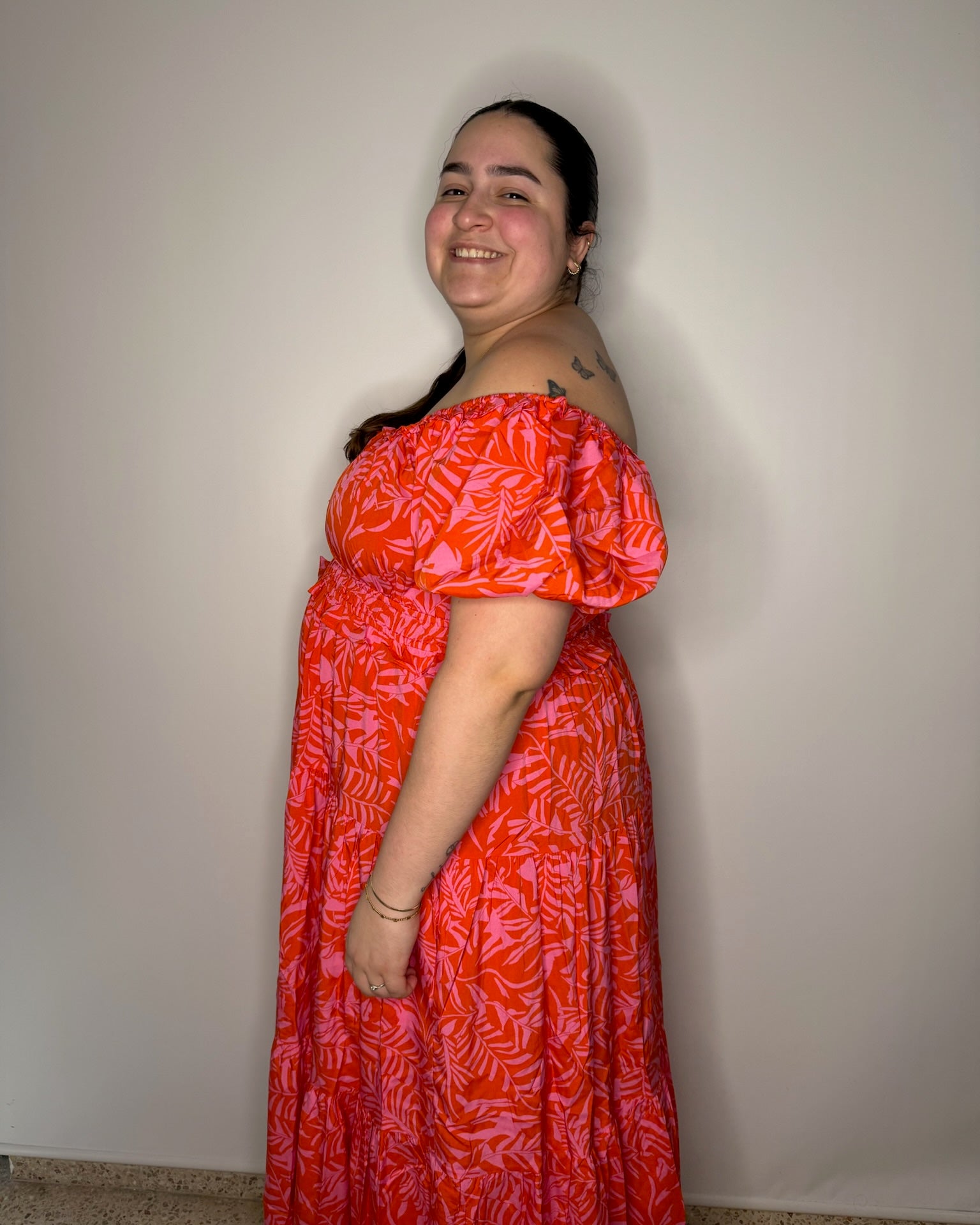 El traje está fabuloso. Lo tengo puesto hoy y me siento como una princesa. Los colores resaltan con mi piel y eso me gusta mucho. Tiene bolsillos que me encanta! Es súper suave y flowy. Deverdad que me encanta demasiado.